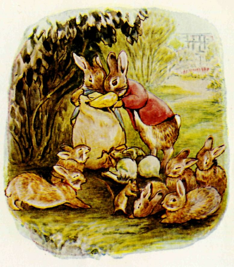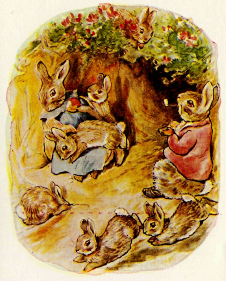 When Benjamin Bunny grew up, he married his Cousin Flopsy. They had a large family, and they were very improvident and cheerful.