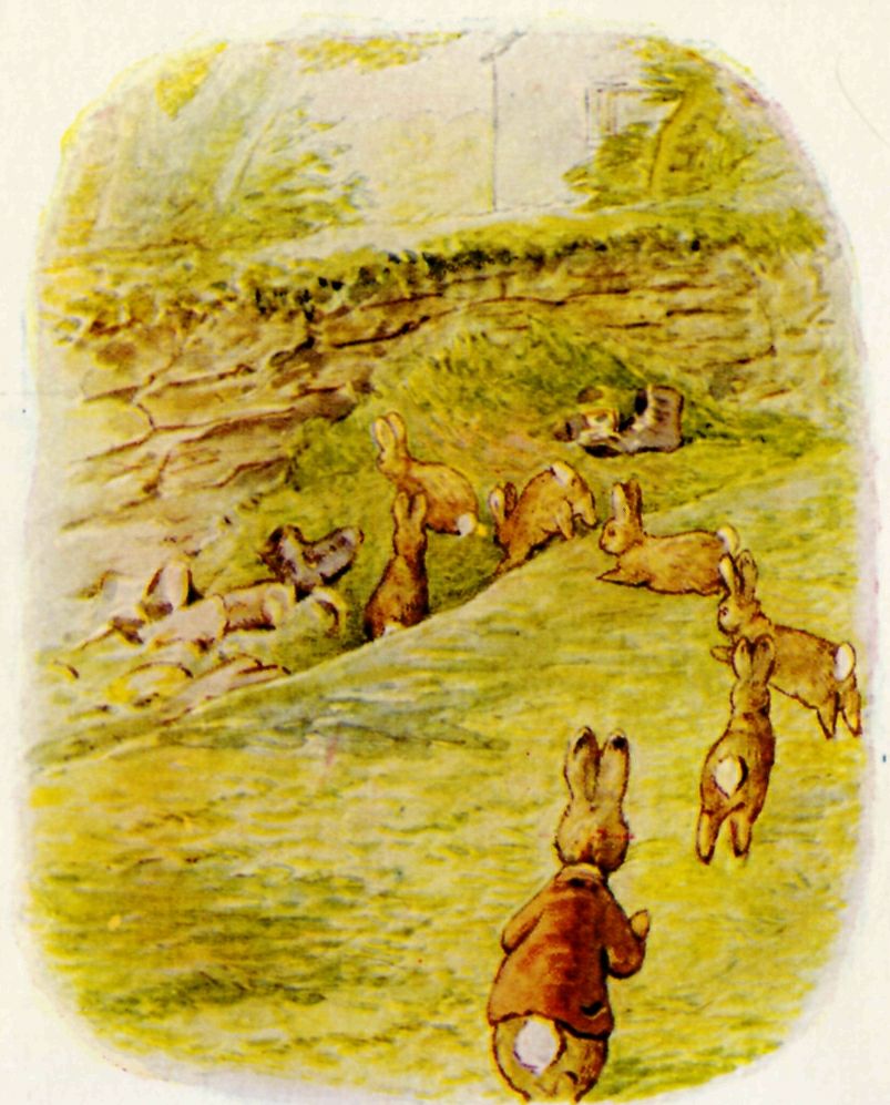 When this happened, the Flopsy Bunnies went across the field to a rubbish heap, in the ditch outside Mr. McGregor's garden.
