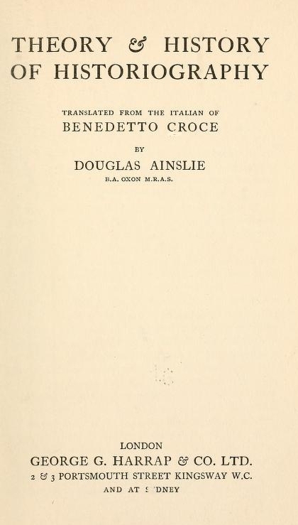 Almost all the writings which compose the present treatise were printed in the proceedings of Italian academies and in Italian reviews between 1912 and 1913. Since they formed part of a general scheme, their collection in book form presented no difficulties. This volume has appeared in German under the title Zur Theorie und Geschichte der Historiographie (Tübingen, Mohr, 1915).