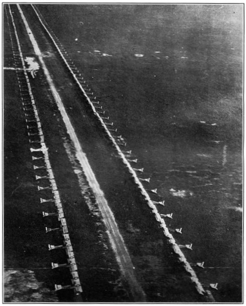 In August, 1914, the total factory capacity in the United States for the manufacture of powder was 6,000,000 pounds a year. In April, 1917, under the stimulation of orders placed by the allies, the capacity had been increased more than sixty-fold. England, France, and Italy were taking this entire production and asking for more.[Pg 586] They had absorbed our entire output. A huge stream of materials, supplies, and ammunition was flowing steadily from America to the front line trenches in France. The allied governments had moulded their military programs in reliance upon the continuation of this source of supply. Their troops were on the front and in contact with the enemy. Failure of supply meant disaster.