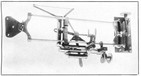 This is the last record by sound ranging of artillery activity on the American front near the River Moselle. It is the reproduction of a piece of recording tape as it issued from an American sound-ranging apparatus when the hour of 11 o'clock on the morning of November 11, 1918, brought the general order to cease firing, and the great war came to an end. Six seconds of sound recording are shown. The broken character of the records on the left indicates great artillery activity; the lack of irregularities on the right indicates almost complete cessation of firing, two breaks in the second line probably being due to the exuberance of a doughboy firing his pistol twice close to one of the recording microphones on the front in celebration of the dawn of peace. The two minutes on either side of the exact armistice hour have been cut from the strip to emphasize the contrast. Sound ranging was an important means of locating the positions and calibers of enemy guns. A description of these wonderful devices, which were a secret with America and the Allies, is given in Book III, chapter 4.