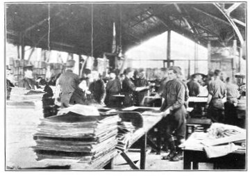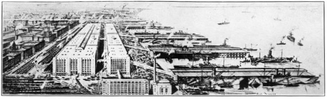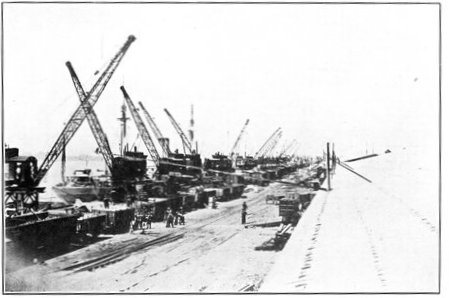 All of America's vast contribution to the allied program of supply was not only produced in America, but it was taken to France in army transports. From August, 1917, to November 11, 1918, an average of 2,000 tons of American materials for French factories left American ports every day aboard American army transports. Through a submarine-infested ocean, in which the Germans sank over 21,000,000 tons of dead-weight shipping, these materials were carried in army transports manned by American crews, and laid down at the doors of French factories.