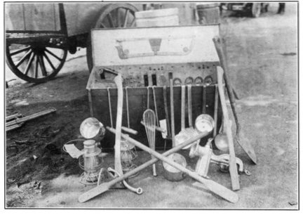 Miscellaneous quartermaster undertakings: Music, Maj. George H. Richards; fuel, oil, and paints, Mr. J. Elliott Hall; brushes, Capt. T. W. S. Phillips; rolling kitchens, Capt. J. G. Williams and Mr. M. A. Dunning; tools and tool chests, Mr. W. F. Fusting and Mr. M. E. Moye; hardware, Lieut. Col. H. P. Hill and Mr. William A. Graham; factory enterprises, Lieut. Col. H. P. Hill; shoe fitting, Col. F. A. Ellison; meat cutting, Dr. W. O. Trone; packing, Capt. R. H. Moody; horses and mules, Maj. A. Cedarwald.