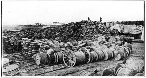 In exchange for the artillery and artillery ammunition of French manufacture fired by Pershing, America supplied to France in metals alone over 700,000 tons of steel, 30,000 tons of pig iron, 5,000 tons of brass and spelter, and 50,000 tons of copper.