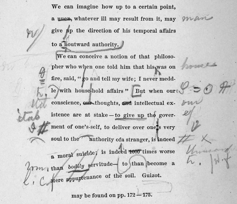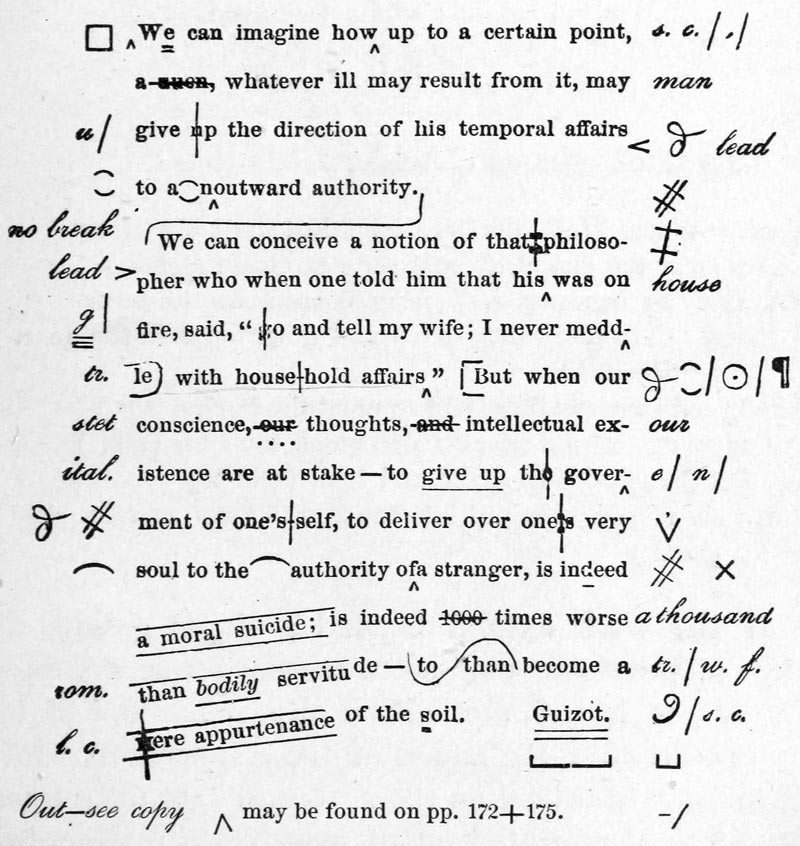 He has been setting up a sermon of the Rev. Mr. Z. The society of the reverend gentleman were so well pleased with the discourse, that they requested a copy for the press. Mr. Z. should, of course, have copied the whole manuscript fairly; for, the haste of composition being past, he could have re-written it carefully, paying especial attention to chirography, spelling out his abbreviations, reducing dislocations, bringing interlineations into line,—in short, he should have done to the compositor what he would that the compositor should do unto him. But, instead of this, what did you do, Mr. Z.? Pen in hand, you re-read the sermon, making erasures, striking out some words and interlining others. You crowded new sentences, of two or three lines each, between lines already closely written; and you interlined these interlineations. You then wrote sundry additions on loose pieces of paper, denoting them as “A,” “B,” “C,” etc., and then placed the same capitals in the body of the work, without sufficiently explaining that new matter was to be inserted; {p23} neither did you make it appear whether the addenda were to constitute new paragraphs. And in this amorphous condition you allowed the sermon to go to the printing-office. It has, too, passed through several hands. Some of the pieces belonging to “A” have got into “B,” and some of the “B” have straggled into “C,”—and the printers cannot say where they do belong.