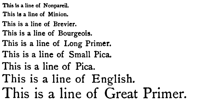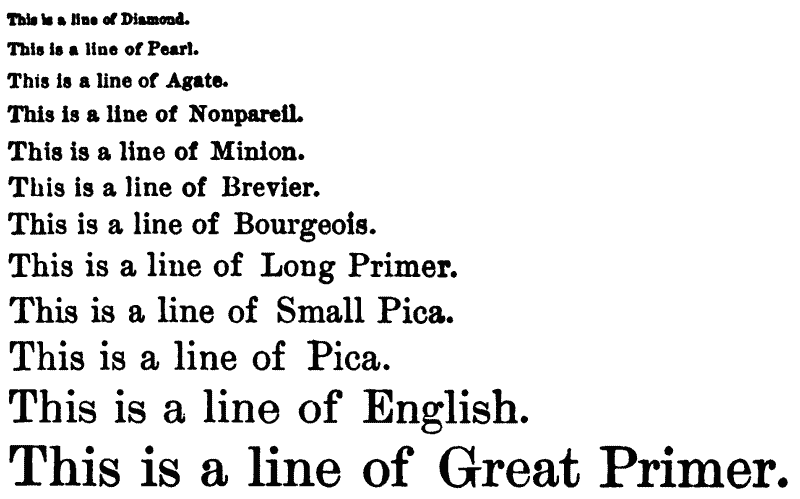 One compositor finds in his “take”[1] the abbreviation “Xn,” and, after many inquiries, learns that X is the Greek Chi, and so “Xn” signifies “Christian.” Another hesitates at a phrase which, to his eye, seems to read “a parboiled skeptic”; but as modern methods with heretics do not include heated applications, he asks those about him what the word is; perhaps goes to the proof-reader with it,—such things are done sometimes,—for the compositor expects ultimately to conform to the proof-reader’s decision,—and thus he loses five or ten minutes in learning that the word is purblind. Now, reverend sir, the compositor’s time is his money, and if you rob him of his time—the inference is obvious. Your better course, henceforth, will be to copy your manuscript, or employ some one to copy it, in a careful, painstaking manner, after all your emendations of the text have been made.