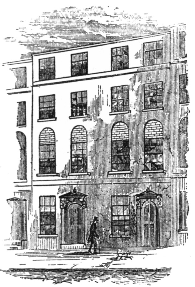 The inscription painted over their school-door{12} asserted that it was kept by “Mr. William Bird, Teacher of Mathematics and Languages.” “Heaven knows what languages were taught in it, then! I am sure that neither my sister nor myself brought any out of it, but a little of our native English”—so Charles wrote nearly fifty years after to William Hone, the editor of the Every Day Book. In its pages had just appeared a woful narrative of the poverty and desolation of one Starkey, who had been “a gentle usher” in that school. In the letter written by Lamb as a pendant to that paper, he gossips characteristically about the memories of those school-days thus awakened in him and in his sister. He vividly portrays that down-trodden and downcast usher, who “was not always the abject thing he came to;” and who actually had bold and figurative words for the big girls, when they talked together, or teased him during his recitations. “Oh, how I remember our legs wedged into those uncomfortable sloping desks, where we sat elbowing each other; and the injunctions to attain a free hand, unattainable in that position!”{13}