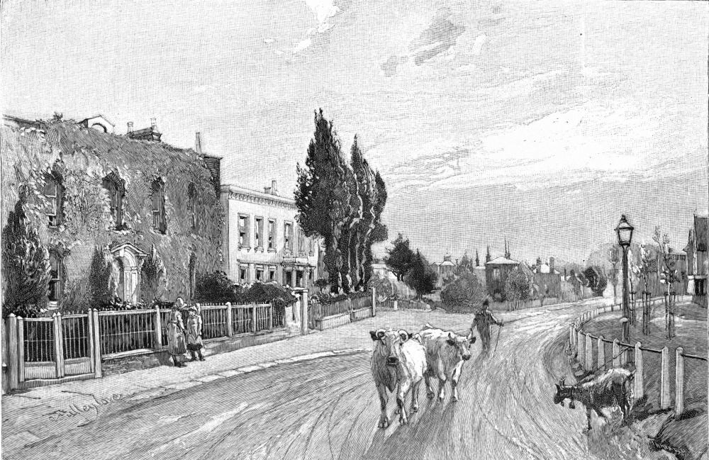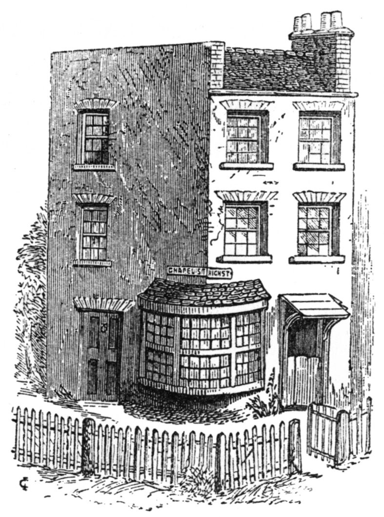 UCH is the legend that catches one’s eye, plain for all men to see, on many a hoarding in London streets. Behind those boards, wide or high, on which the callous contractor shamelessly blazons his dreadful trade—“Old Houses Bought to be Pulled Down”—he is stupidly pickaxing to pieces historic bricks and mortar which ought to be preserved priceless and imperishable. Within only a few years, I have had to look on, while thus were broken to bits and carted away to chaos John Dryden’s dwelling-place in Fetter Lane, Benjamin Franklin’s and Washington Irving’s lodgings in Little Britain, Byron’s birthplace in Hollis Street, Milton’s “pretty garden-house,” in Petty France, Westminster.{4} The spacious fireplace by which the poet sat, during his fast-darkening days—for in this house he lost his first wife and his eyesight—was knocked down, as only one among other numbered lots, to stolid builders. And the stone, “Sacred to Milton, the Prince of Poets”—placed in the wall facing the garden, by William Hazlitt, living here early in our century, beneath which Jeremy Bentham, occupant of the adjoining house, was wont to make his guests fall on their knees—this stone has gone to “patch a wall to expel the winter’s flaw.”