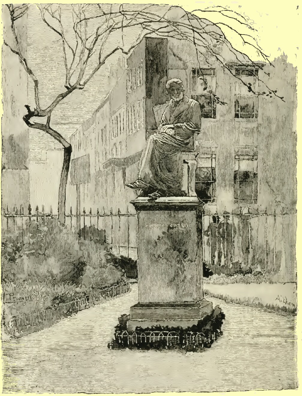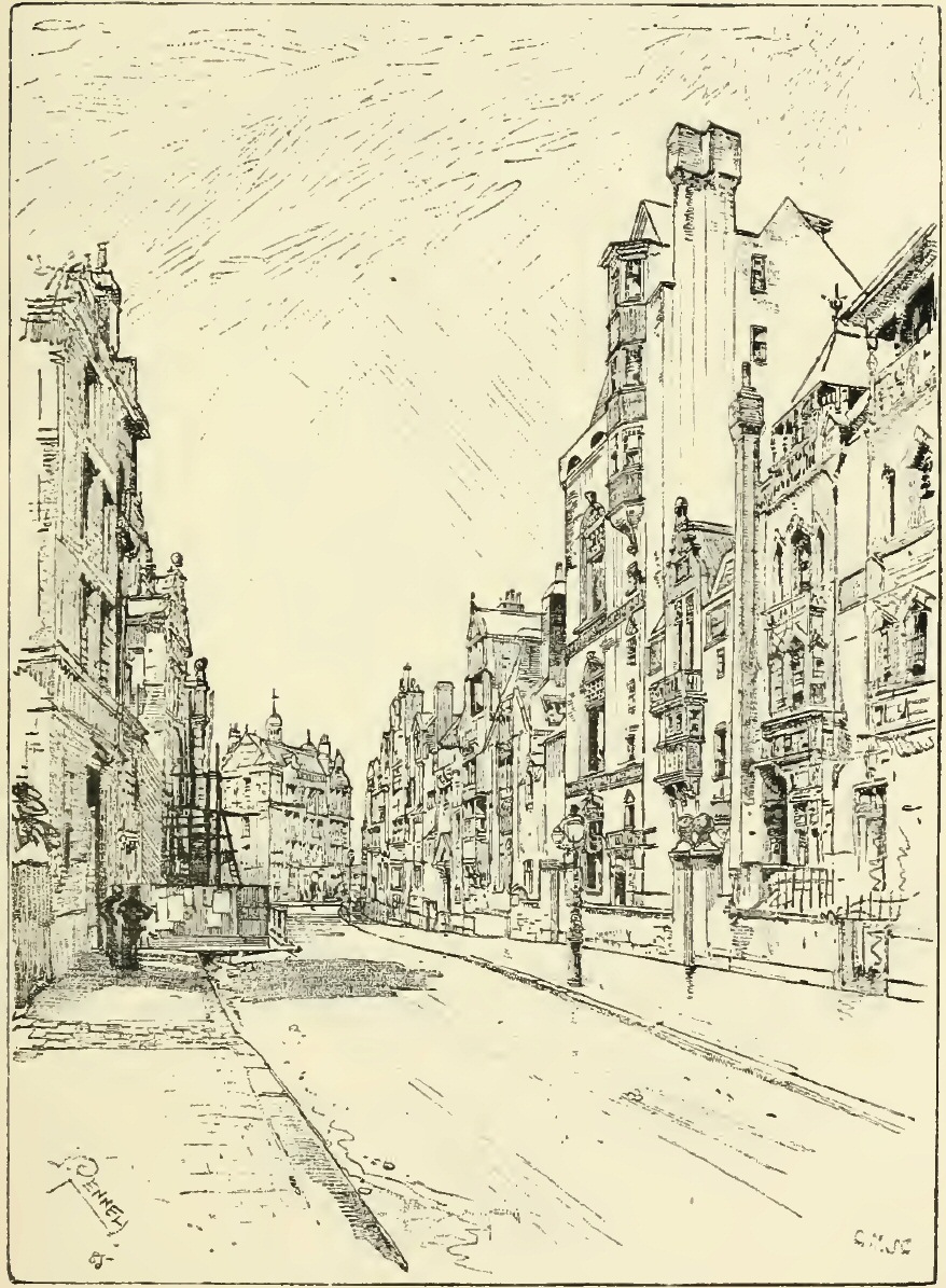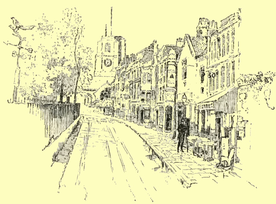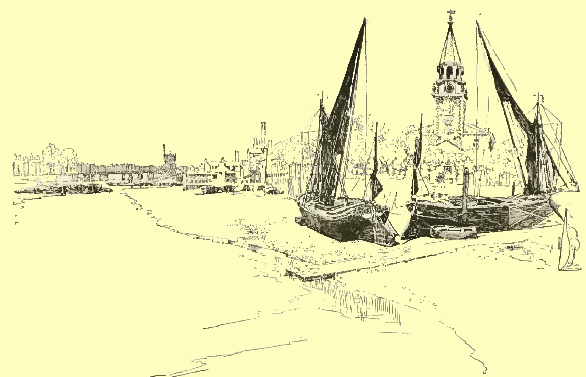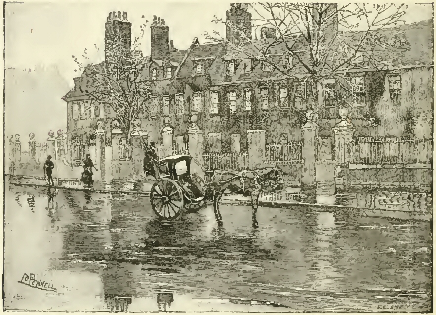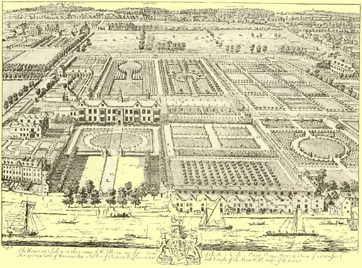 I had strolled, on a summer day, from Apsley House towards the then residence of Charles Reade at Knightsbridge, when I came upon one of those surprises of which London is still so full to me, even after more than a dozen years of fond familiarity with its streets and with all that they mean to the true lover of the Town. For, as I watched the ceaseless traffic of the turbulent turnings from the great thoroughfare down towards Chelsea, there came to my mind a phrase in the pages of its local historian: who, writing but a little earlier than the year 1830, points with pride to a project just then formed for the laying out of the latest of these very streets—at that day it was a new rural road cut through fields and swamps—and by it, he says, “Chelsea will obtain direct connection with London; p. 14and henceforth must be considered an integral part of the Great Metropolis of the British Empire”! It is hard to realise that only fifty years ago Chelsea was a rustic and retired village, far from London: even as was Islington, fifty years ago, when Charles Lamb, pensioned and set free from his desk in the India House, retired to that secluded spot with his sister to live “in a cottage, with a spacious garden,” as he wrote; with “the New River, rather elderly by this time, running in front (if a moderate walking pace can be so termed)”: even as was Kensington—“the old court suburb pleasantly situated on the great Western road”—just fifty years ago, when wits and statesmen drove between fields and market gardens to the rival courts of Gore House and of Holland House; and N. P. Willis delighted the feminine readers of the New York Mirror with his gossip about his visits to Lady Blessington and about the celebrities who bowed before her. To-day all these villages, along with many even more remote, are one with London. Yet, more than any of them, has Chelsea kept its old village character—albeit preserving but few of its old village features. p. 17Of the many magnificent mansions which gave it the name of “The Village of Palaces” five alone still stand—Blacklands, Gough, Lindsey, Stanley and Walpole Houses—and these are greatly altered. I shall show you all of them in our stroll to-day. In between them, and away beyond them, streets have been cut, new quarters built: made up in part of “genteel” villas and rows of respectable residences; but in great part, also, of cheap dwellings, of small and shabby shops. These extremes render much of modern Chelsea utterly uninteresting, except mayhap to the collector of rents or to the inspector of nuisances. Yet much of that which is truly ancient and honourable has been fondly kept untouched, and not ignobly cleaned, as in next-door Kensington. Alongside this artistic squalor we have the curious contrast of artistic splendour in a blazing, brand-new quarter, of which the sacred centre is Tite Street. Here, amid much that is good and genuine in our modern manner, there is an aggressive affectation of antiquity shown by the little houses and studios obtruding on the street, by the grandiose piles of mansions towering on the embankment: all in p. 18raging red brick, and in the so-called Queen Anne style. The original article, deadly dull and decorous as it may be, has yet a decent dignity of its own as a real relic, not found in this painful pretence of ancient quaintness. This is a quarter, however, much in vogue; mighty swells dwell here, and here pose some famous farceurs in art and literature; here, too, work many earnest men and women in all pursuits of life. These latter plentifully people every part of Chelsea, for the sake of the seclusion and the stillness they seek and here find: just as there settled here for the same reasons, two centuries ago and earlier, men of learning and of wealth, scholars and nobles, who kept themselves exclusive by virtue of their birth or their brains. And so this privileged suburb,