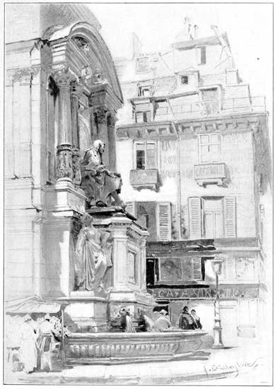 Here, on an evening in 1709, sat Alain-René Le Sage, awaiting in suspense the verdict on his "Turcaret," brought out in the theatre opposite, after many heart-breaking delays; for the misguided author had convinced himself that his title to fame would be founded on this now-forgotten play, rather than on his never-to-be-neglected "Gil Blas"!