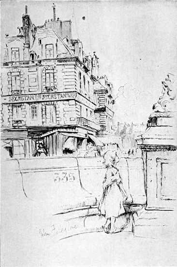 We are to see a Paris unknown to the every-day dweller there, who is content to tread, in wearied idleness, his swarming yet empty boulevards; a Paris unseen by the hurried visitor, anxious to go his round of dutiful sight-seeing. This Paris is far away from the crowd, bustling in pursuit of pleasure, and hustling in pursuit of leisure; out of sound of the teasing clatter of cab-wheels, and the tormenting toot of tram-horns, and the petulant snapping of whips; out of sight of to-day's pretentious structures and pompous monuments. To find this Paris we must explore remote quarters, lose ourselves in untrodden streets, coast along the alluring curves of the quays, cruise for sequestered islands behind the multitudinous streams of traffic. We shall not push ahead just to get somewhere, nor restlessly "rush in to peer and praise." We shall learn to flâner, not without object, but with art and conscience; to saunter, in the sense of that word, humorously derived by Thoreau from Sainte-Terre, and so transform ourselves into pilgrims to the spots sacred in history and legend, in art and literature. In a word, if you go with us, you are to become Sentimental Prowlers. 14