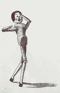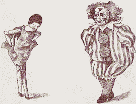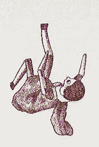 The "Golliwogg" with flying hair,