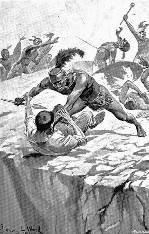 “Whau, Jandosi! Your Amakafula have had a narrow escape from the spears of our people,” said Sobuza, quizzically. “Almost as narrow a one as you yourself had from the bite of The Tooth of the Igazipuza. And now let us stand beneath the rock of death and see if these wizards have been able to take to themselves wings and fly down unhurt.”