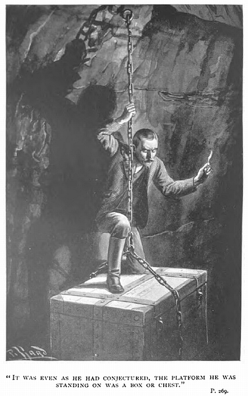 Then a misgiving seized him. What if it should contain nothing? What if he had been allowing his over-wrought imagination to run away with him? The chest was there—no doubt about that, but what if it contained nothing more than a lot of old parchments, or a storage of ordinarily trumpery trinkets? Things might, in that event, take an awkward turn. But no, he would not believe it. The strength of the chain, the weight of the chest, the weird, unheard of place of its concealment, the care and labour involved in designing such a hiding place, all pointed to this being the object of his search. And then, too, the topographical features of the surroundings were all exactly as set forth in his father’s instructions. Every piece of the puzzle seemed to fit in to a nicety.