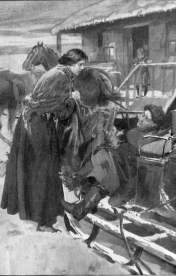 “Steady, there!” he murmured encouragingly, as he unrolled himself from his various rugs and wrappings and then got slowly out of the wagon.