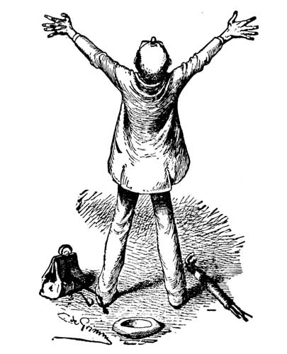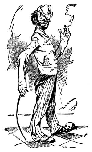 I then drew from my pocket a copy of the Sunday World, which contained a voluptuous picture of myself. Removing my hat and making a court salaam by letting out four additional joints in my lithe and versatile limbs, I asked if any further identification would be necessary.