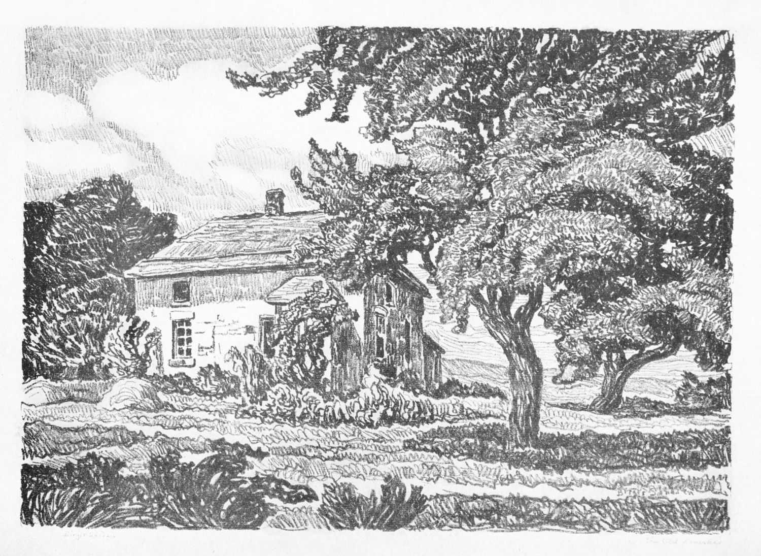Sometimes his landscapes express the poignant loneliness that broods over the Kansas prairie. Oftener he sees the delightful homeliness of the farmsteads, changing the Smoky River Valley from a wilderness to a place of hearthstones and human happiness.
