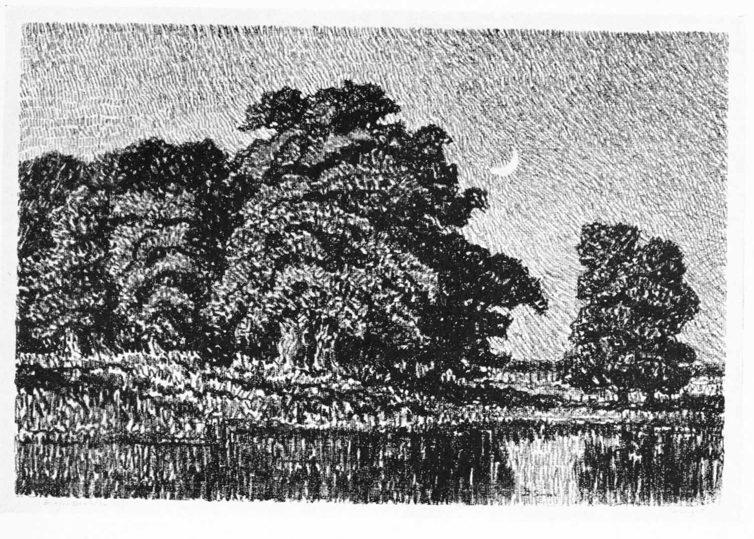 Thus it is that when Mr. Sandzen makes a study of the moon stealing up behind the willows before the flush of afternoon is quite gone, he puts into the picture not only the objects a stranger might see, but also the deep love he bears the river and the land it has enriched.