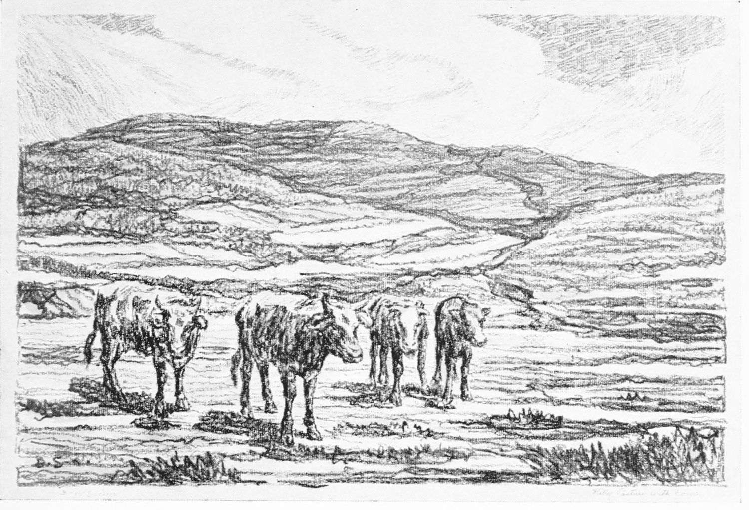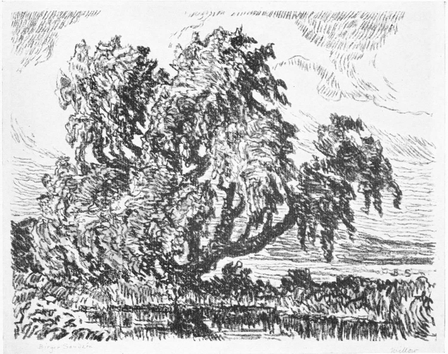 It was so that Birger Sandzen learned to love the Kansas landscape. But first he sought the shadowed banks of the Smoky. By sunlight and moonlight he studied it. Following its graceful windings, he caught the poetry of Kansas,—the tired droop of cattle as they came to drink at dusk, the grouping of horses in hillside pastures, huddled cottonwoods like shy children along the clean banks of the stream.