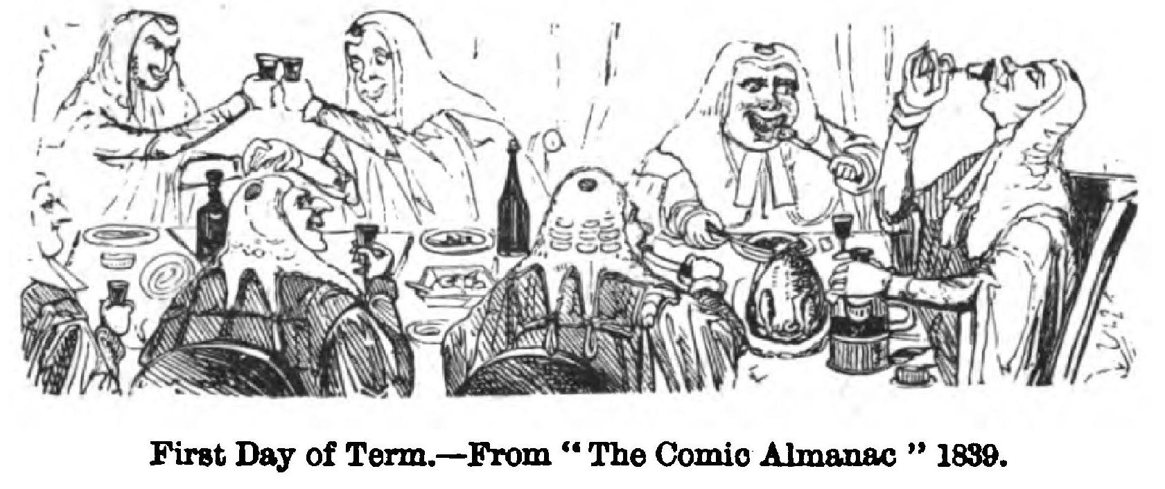 It was after another and a final parting from Mr. Ainsworth, on the sale of his magazine, that Cruikshank, “left in the lurch,” to use his own phrase, started his “Table-Book,” with Gilbert à Beckett as editor, and Bradbury and Evans as printers and publishers. The artist has put on record the manner in which he and the eminent Whitefriars firm came together:—