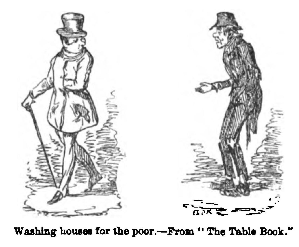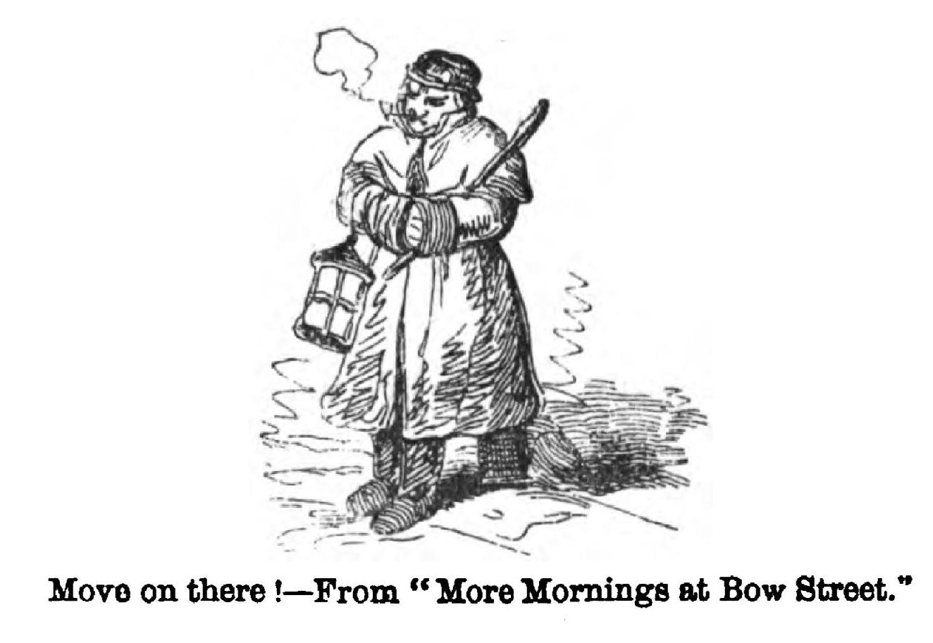 The crowd consists of “some worthy gentlemen, magistrates, and others,” who, on their way “to the Town Hall on county business,” have found this forlorn boy upon the pavement leaning against the wall. As he was neither begging nor stealing, and did not obstruct the pathway, he could not be taken into custody. When asked what was the matter, he replied, “I wants summut to eat.” Then follows the learned consultation around the starving boy:—