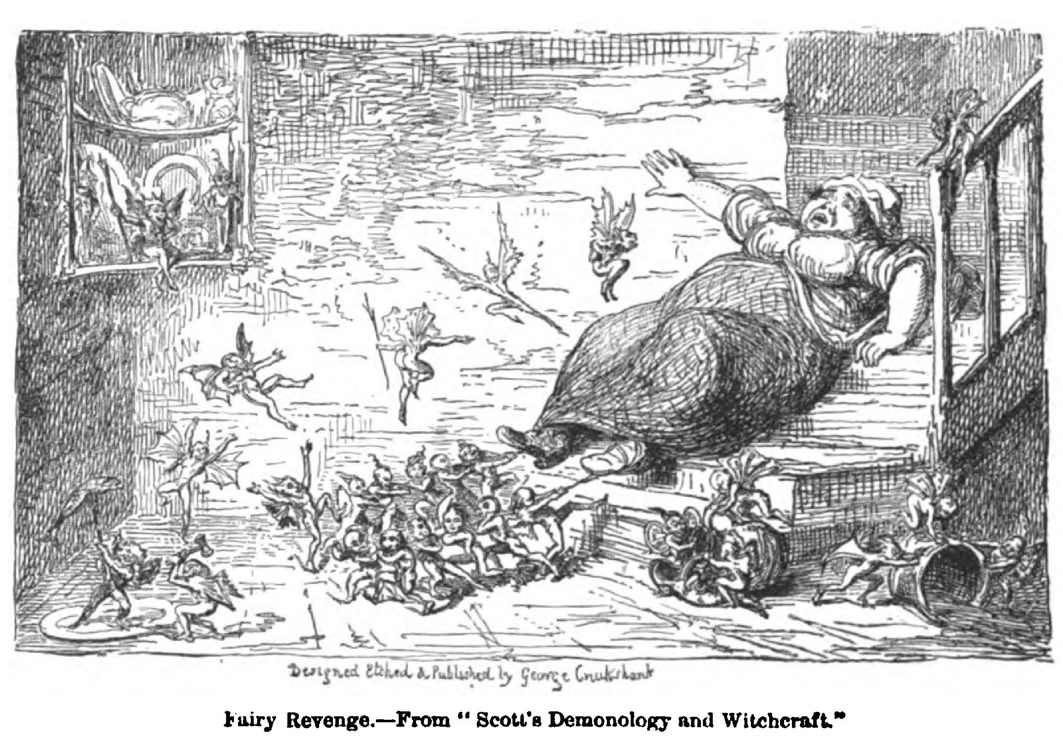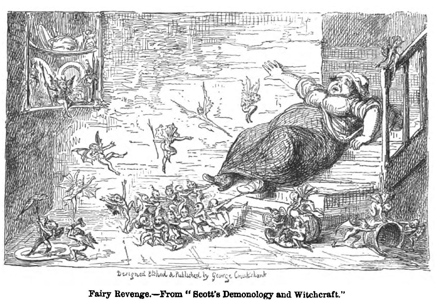 “The hundreds of tiny figures in this etching are shown with a distinctness and power of characterisation unrivalled by any other artist. I think that he surpassed Callot in this respect; and that no one could approach George Cruikshank in his vigorous, life-like, and picturesque delineation of surging crowds and packed masses of human beings.”
