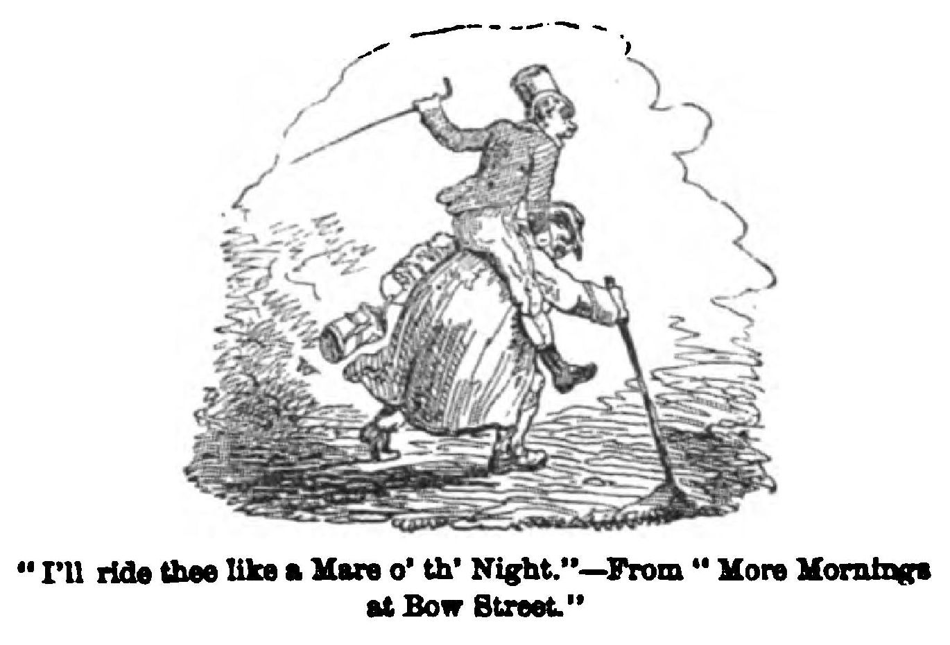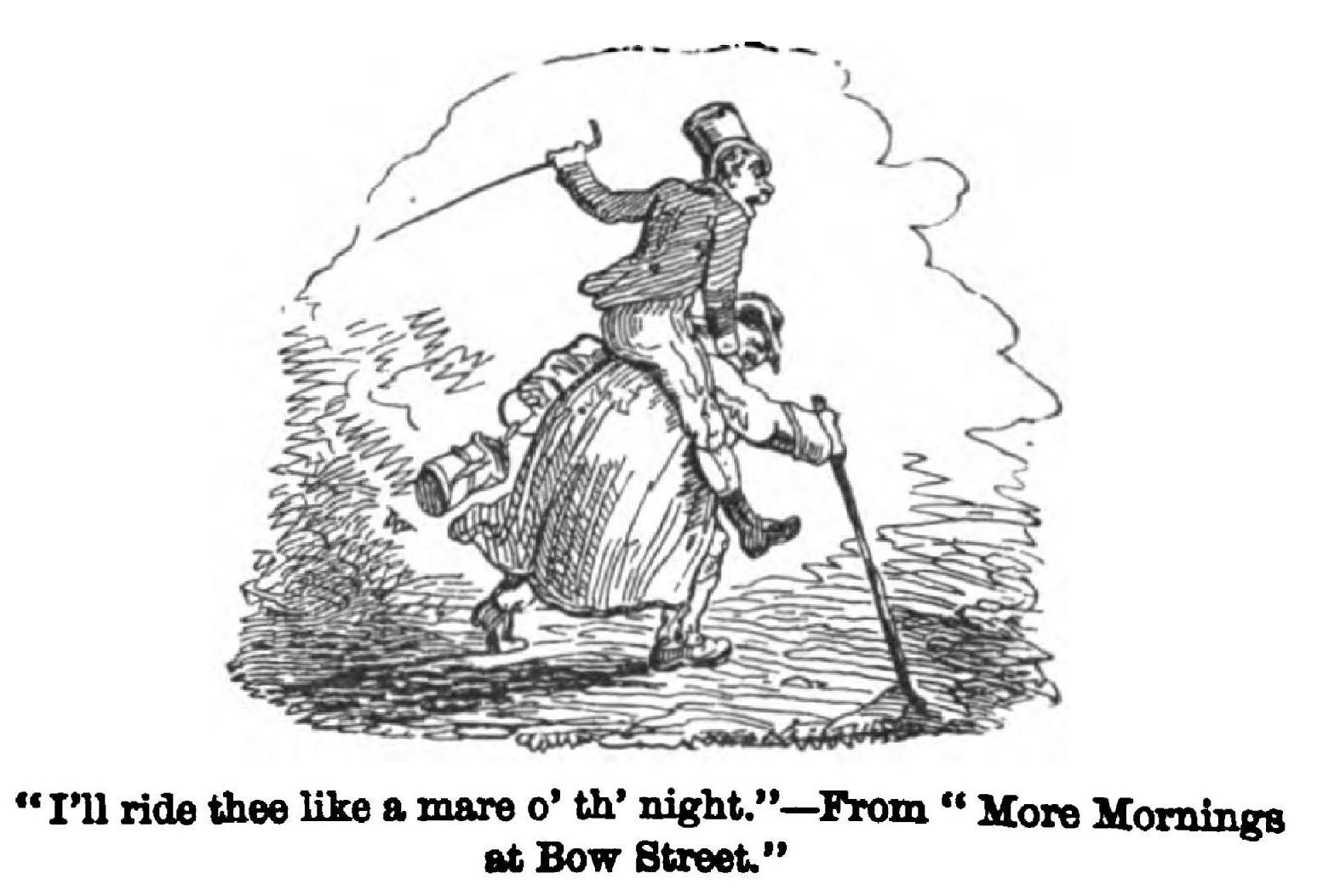 “In that paper I spoke of a lady in an omnibus, whose set of false teeth were projected into her opposite neighbour’s lap through a sudden jolt of the vehicle while she was sucking her parasol handle. This led me to tell Cruikshank an anecdote that I had then recently heard, and which, as it has not been in print, I may here narrate; for Cruikshank laughed very heartily at it, and said that he should like to make an illustration to it, and asked me if I could not write a paper on country rectors and their adventures, in which it might be introduced, and which he would further illustrate. Very likely this suggestion might have been carried into effect if Mr. D. Bogue had carried on the magazine. As it was, it was lost to the world.”