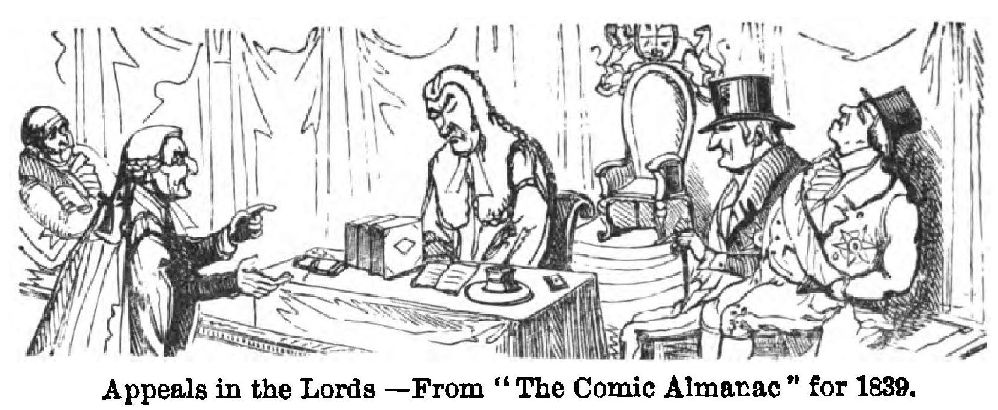 “It will now be naturally asked why my cartoon was not exhibited with others, some of which were equally monstrous, in the Hall of Westminster. The fact is, if the truth must out, the cartoon would not go in. Though I had cramped my genius already to suit the views of the Commissioners and the size of the door, I found I must have stooped much lower if I had resolved on finding admittance for my work. I wrote at once to the Woods and Forests, calling upon them to widen the door for genius, by taking down a portion of the wall: but it will hardly be believed, that though there were, at the time, plenty of workmen about the building, no answer was returned to my request. Alas! it is all very well to sing, as they do in Der Freischutz, ‘Through the Woods and through the Forests,’ but towards me the Woods and Forests proved themselves utterly impenetrable.