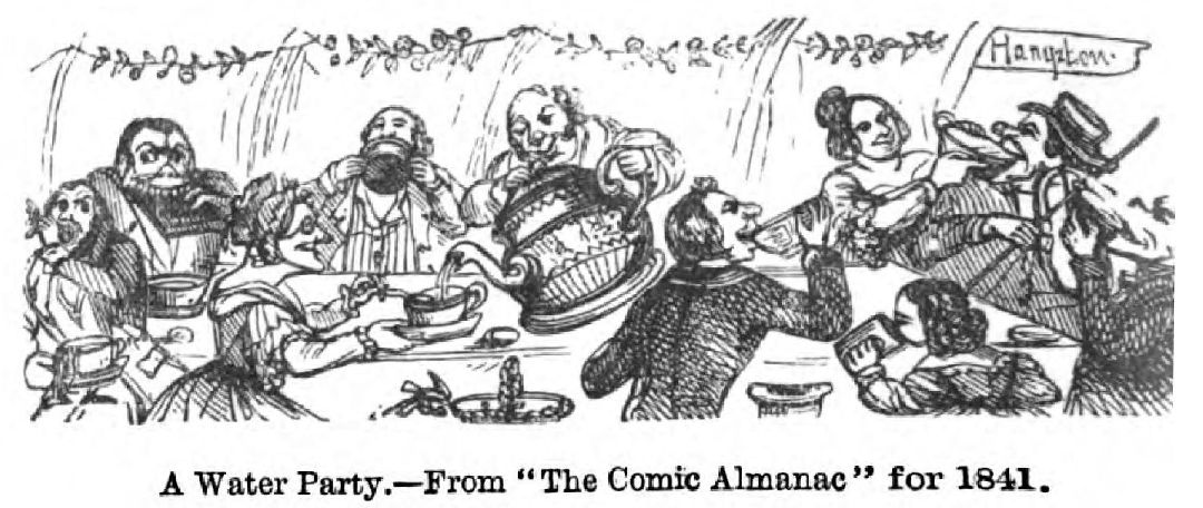 “Oh, Father Mathew I why dost thou incline Against all spirits thus to whine? To preach against good liquor is a scandal. Why to such rash conclusions jump— To airy, dull, unsocial pump, Why give a handle? Water is very well—but then ‘tis known That well is always better let alone. Washing is water’s only function, Save when a little drop poured in— To brandy, whisky, rum, or gin, Makes glorious grand junction.”