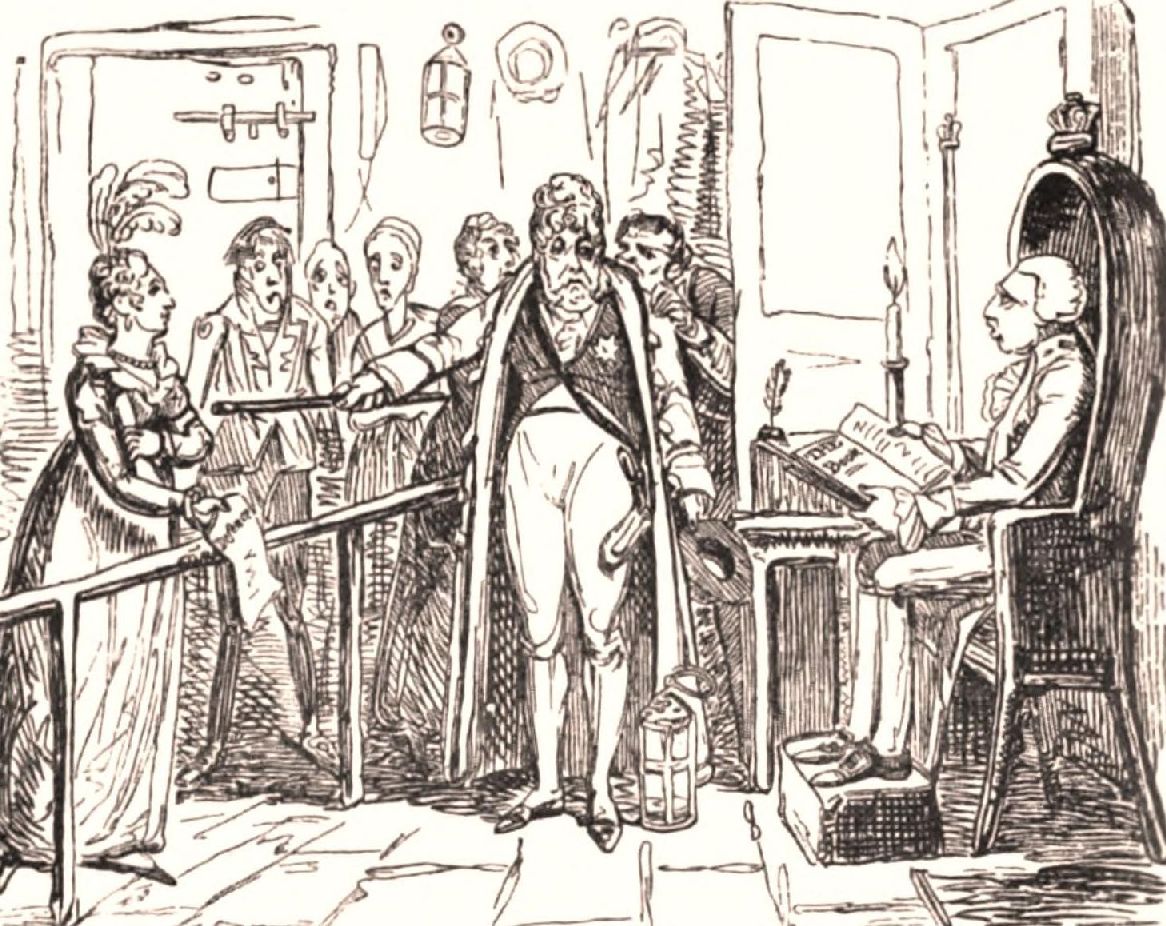 Cruikshank’s picture of her is one of his stereotyped, ill-favoured, stuck-up, figureless ladies, of whom a friend said one day, when looking over some sketches, in Amwell Street, “Why, George, your females are all shaped like hour-glasses.”