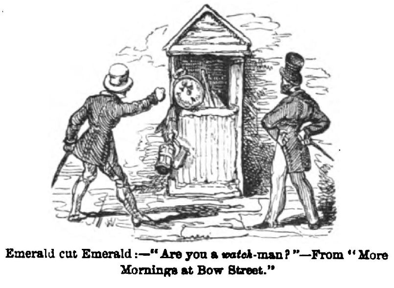 “I remember him about 1846,” said Mr. W. H. Wills, another old friend. “He was then flirting with Temperance. I wanted him to dine at my house; but he excused himself, saying he should be led into temptation, and he had resolved to be a water-drinker thenceforth.” He did not go to dinner, but dropped in later—much excited; and when his host pushed the water-bottle towards him, he gently added brandy. The guests departed, leaving the hilarious George, with two others, to finish the evening; and when the trio got into the street, they found the old difficulty in restraining Cruikshank’s boisterous spirits. After trying in vain for something more than an hour to lead him home, they left him—climbing up a lamp-post!