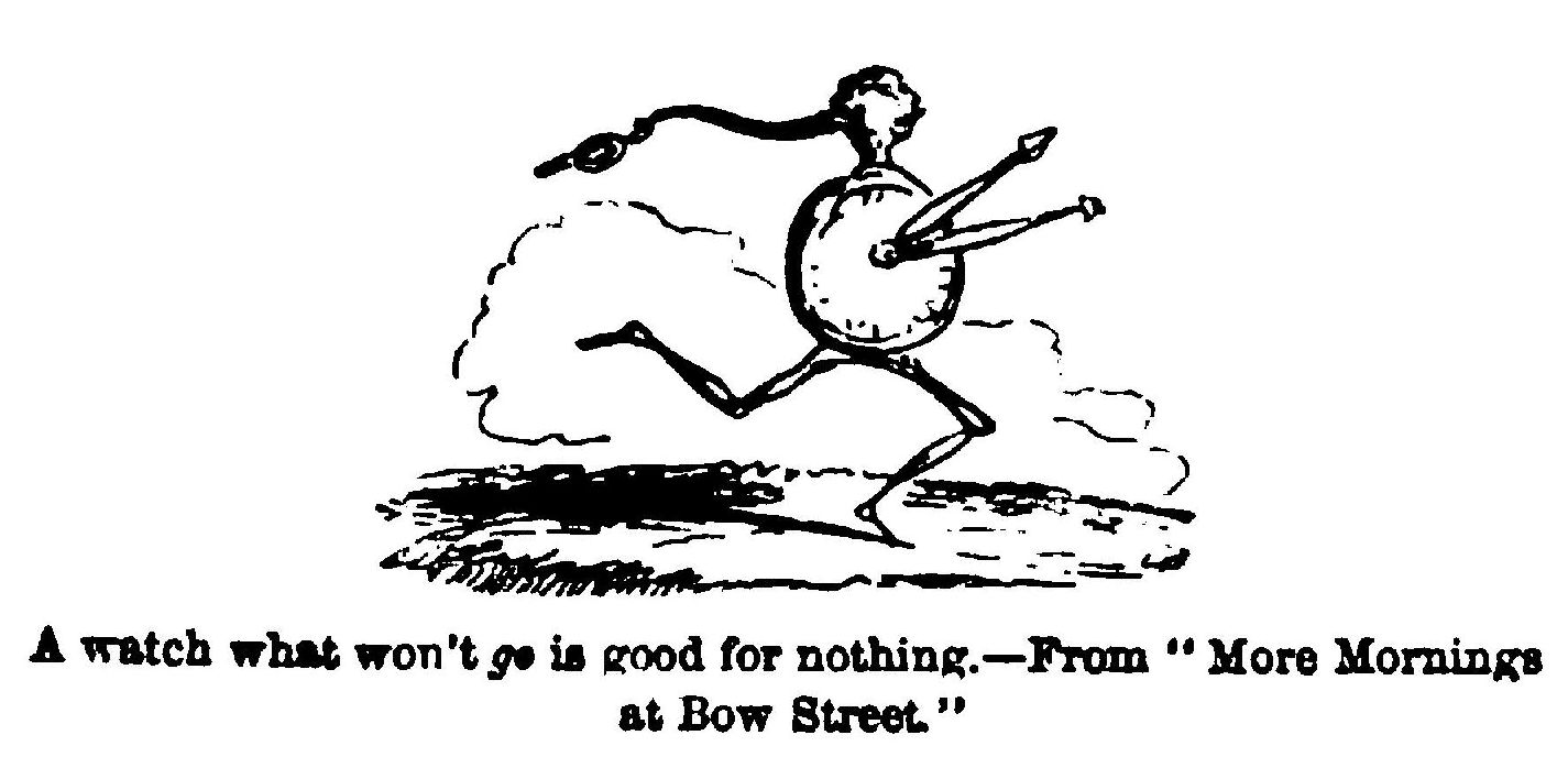 “I didn’t know him from a man (except by his clothes); but I says faintly, ‘If you’re a Christian man, show me where to get a second-cladge ticket for Manjester, and have me put in a carriage, or I shall drop.’ Which he kindly did, in a cheerful kind of way, skipping about in the strangest manner as ever I see, making all kinds of actions, and looking and vinking at me from under the brim of his hat (which was a good deal turned up), to that extent, that I should have thought he meant something but for being so flurried as not to have no thoughts at all until I was put in a carriage along with an individgle—the politest as ever I see—in a shepherd’s plaid suit with a long gold watch-guard hanging round his neck, and his hand a trembling through nervousness worse than an aspian leaf. Presently they fell into conversation.