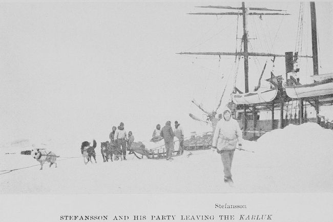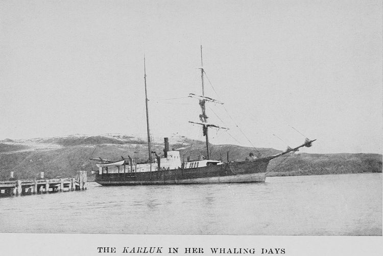 One was that the Karluk, though an old-time whaler, was not built, as the Roosevelt was, especially for withstanding ice-pressure; very few ships are. Dr. Nansen’s ship, the Fram, was built for the purpose and has had a glorious record in both the Arctic and the Antarctic. The Karluk, a brigantine of 247 tons, 126 feet long, 23 feet in beam, drawing 16-1/2 feet when loaded, was built in Oregon originally to be a tender for the salmon-fisheries of the Aleutian Islands. Her duty had been to go around among the stations and pick up fish for the larger ships. The word karluk, in fact, is Aleut for fish. When later in her career she was put into the whaling service her bow and sides were sheathed with two-inch Australian ironwood but she had neither the strength to sustain ice-pressure nor the engine-power to force her way through loose ice. She had had, however, an honorable career in the now virtually departed industry of Arctic whaling, and was personally and pleasantly known to Stefansson, who had travelled on her from place to place along the Alaskan coast on[3] several occasions during his expeditions of 1906-7 and 1908-12.