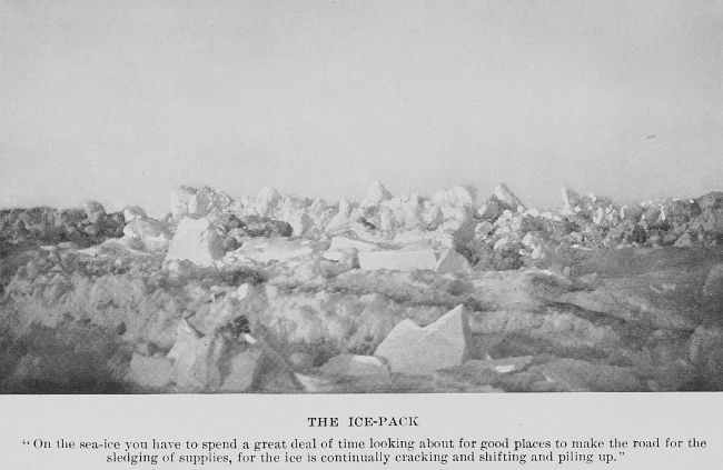 Kataktovick and I, as I have already related, left the island on March 18. The Munro party, starting the day before for Shipwreck Camp, made their way with comparatively little difficulty over the ice until they had crossed the great pressure-ridge that had held us up so long on the way in. Not far on the other side they came to open water, so they had to return to the island.