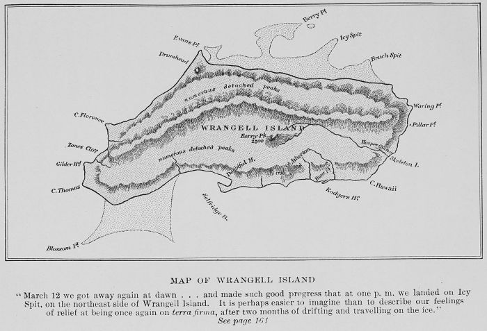 There was nothing to be said. I had not really expected to see the mate’s party or the Mackay party, for I had long since ceased to believe that there was any reasonable chance that they could have got through to a safe place, but though it was hard to be forced to what appeared the inevitable conclusion in their case, it was an especially sad and bitter blow to learn that three of the men whom I had seen arrive at Wrangell Island had thus reached safety only to die.