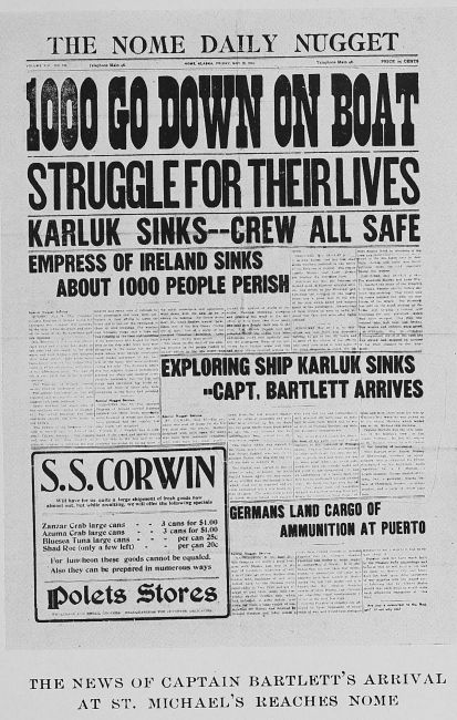 | The news of Captain Bartlett’s arrival at St. Michael’s reaches Nome | 282 |