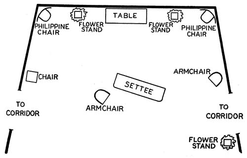 (She glances about, then impulsively leans behind the huge back of the Philippine chair as the curtain descends.)