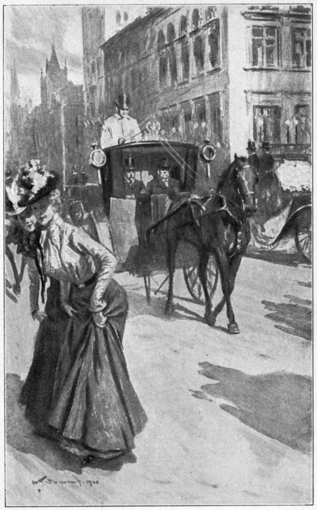 She looked very handsome in her large hat and her black furs, which set off the pallor of her face, relieved by the deep eyes, now a little sunken, and with a dark line beneath them. She took no notice of the laborers as they stood aside to allow her aunt’s comfortable carriage to draw up before the door. She did not observe the laughing children at an upper window of the house exactly opposite, highly excited at the vision of a huge Christmas tree which towered aloft in a cart before the door. She was waiting for Aunt Cordelia to take her to a tea, and then to a studio, where her portrait was to be shown to a few of her friends.