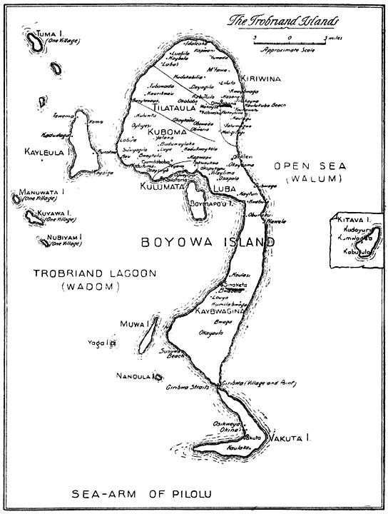 In this volume I give an account of one phase of savage life only, in describing certain forms of inter-tribal, trading relations among the natives of New Guinea. This account has been culled, as a preliminary monograph, from Ethnographic material, covering the whole extent of the tribal culture of one district. One of the first conditions of acceptable Ethnographic work certainly is that it should deal with the totality of all social, cultural and psychological aspects of the community, for they are so interwoven that not one can be understood without taking into consideration all the others. The reader of this monograph will clearly see that, though its main theme is economic—for it deals with commercial enterprise, exchange and trade—constant reference has to be made to social organisation, the power of magic, to mythology and folklore, and indeed to all other aspects as well as the main one.