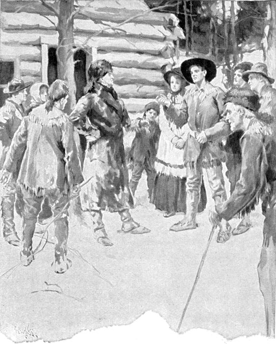 While the three signers were busy at the master’s table, a little cloud of turkey feathers broke suddenly over a group of boys and girls who were gathered round the fireplace of the big schoolhouse. Jimmy Claiborne had thrown a handful of the feathers he was plucking at Louis Gist.