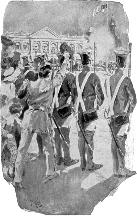 Immediately a great outcry ensued inside. Children and women screamed, and presently a gun was fired. Napoleon was creating a terrible commotion, and it was uncertain what damage to life or property he might be doing. But Grimsby, being overmatched by his assailants, was unable to go in pursuit of him. After a scuffle the lieutenant ran back to the river bank and called on Moses, Lewis and Wistar Royce to return with him.