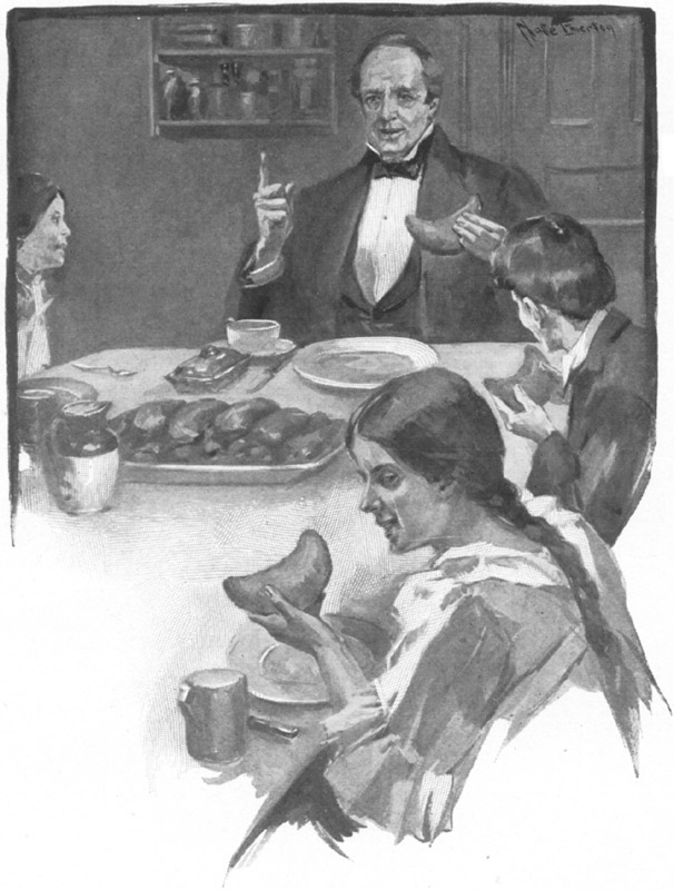 Addison gave a brief account of our adventure; we [Pg 417]then proceeded homeward together, and were in time for Gram's Thanksgiving dinner at three o'clock, for which it is needless to say that we brought large appetites. But I recall that the pleasures of the table for me were somewhat marred by my feet which continued to ache and burn painfully for two or three hours.