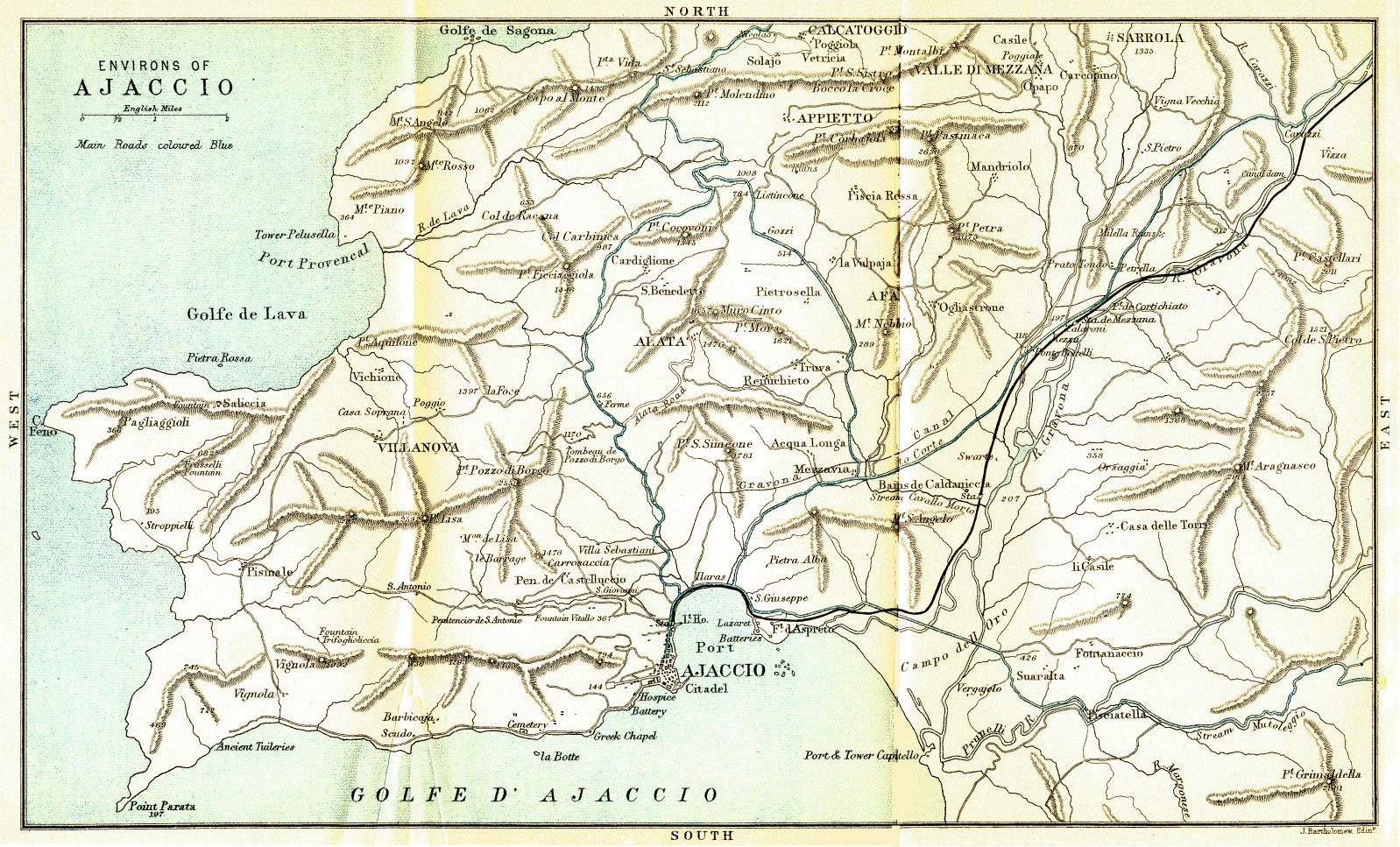 Ajaccio to Sartène, by Cauro, Apa, Olmeto and Propriano. See S.W. end of general map |