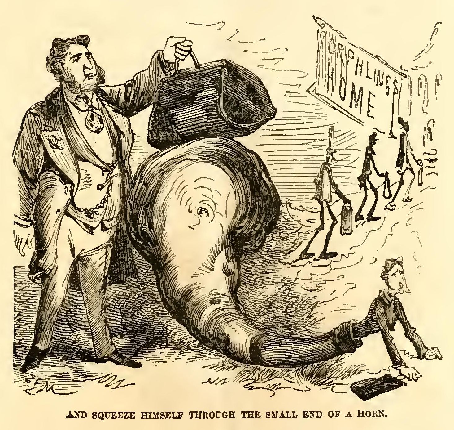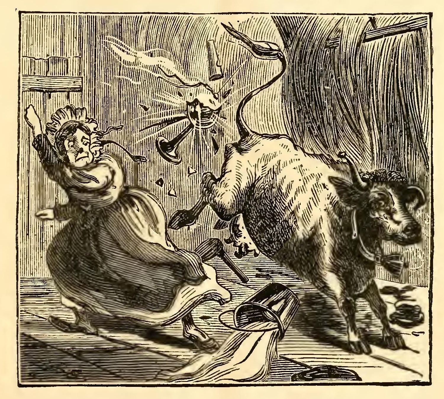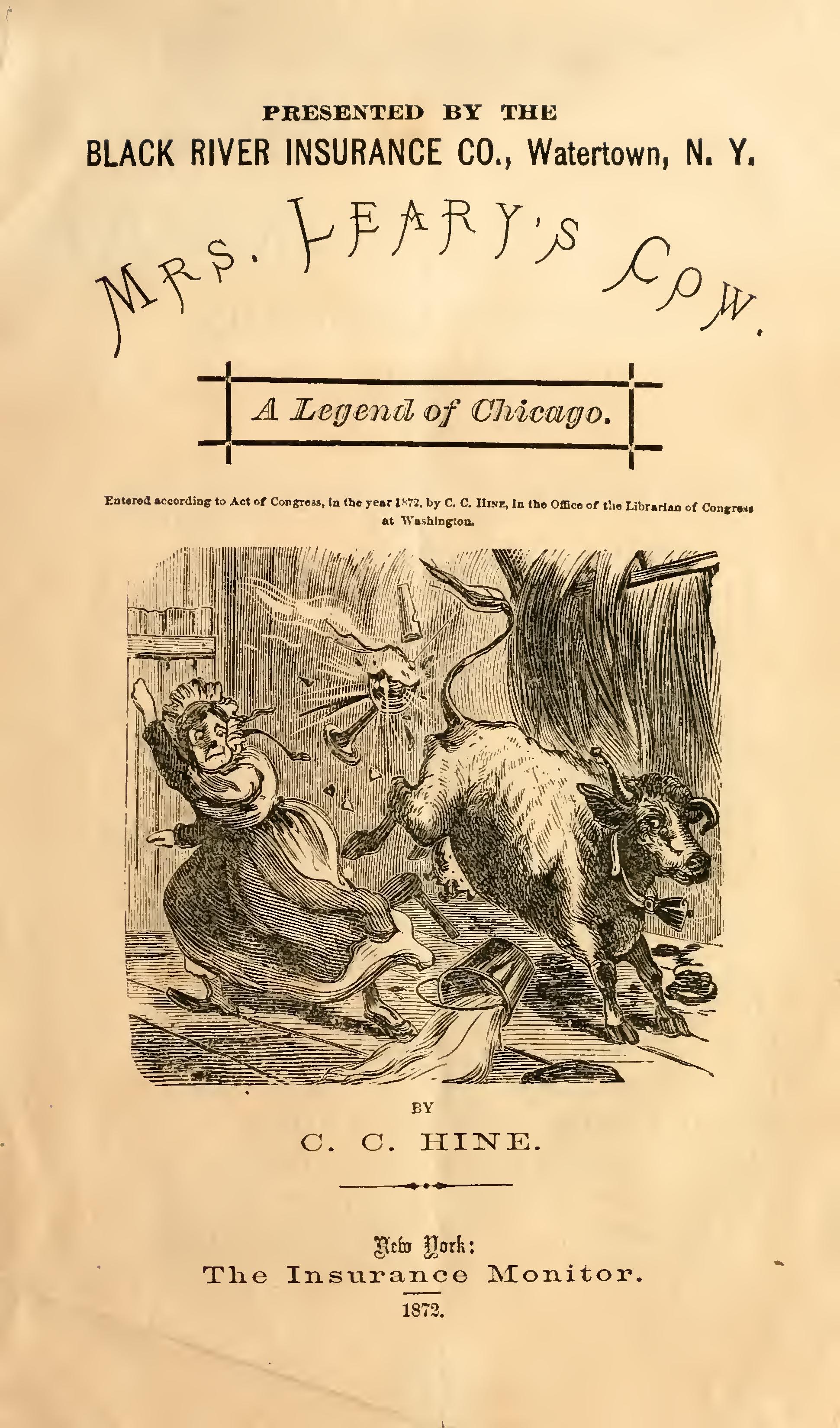 [Shortly after the Chicago fire, there appeared a dismal-looking photograph card of this celebrated bovine, on the reverse of which was printed this remarkable legend: