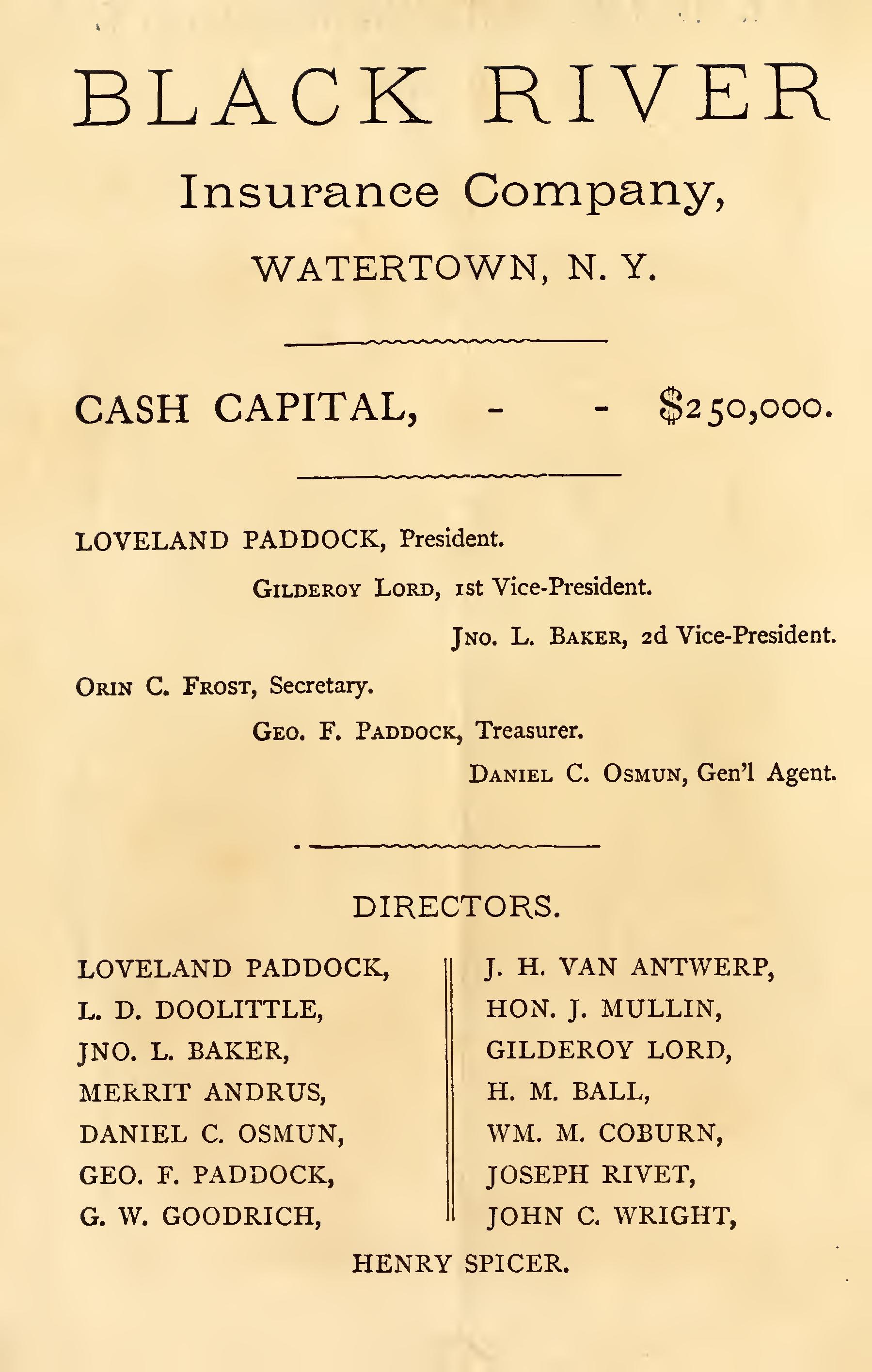 Presented By The Black River Insurance Co., Watertown, N. Y.