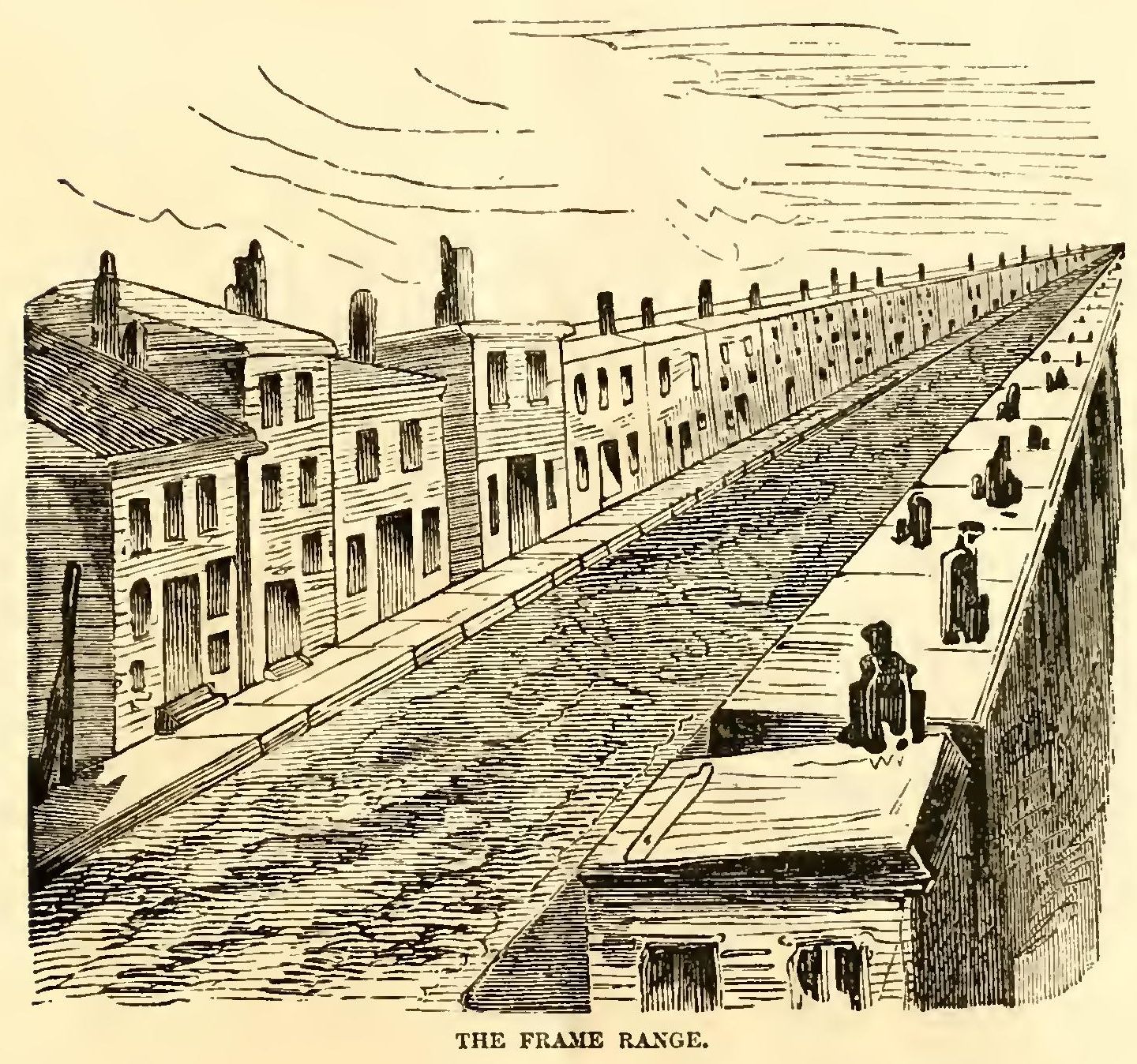 "Mrs. Leary got her living by selling milk; she had five cows, and kept them in her barn on De Koven street, on the west side of the river. A neighbor woman called on her for a pint of milk at nine o'clock Sunday night, October 8th, and Mrs. Leary, having sold all she had, went to the barn with her lamp to make a further draft on her best cow. The cow, as seen by the picture, being a spirited animal, became indignant at the attempt, kicked over the lamp, setting the barn on fire, and thus inaugurated the greatest fire the world has ever seen."]