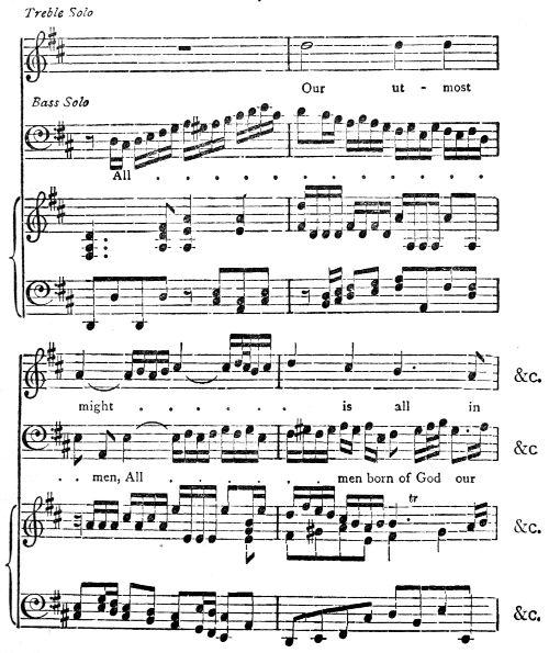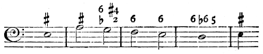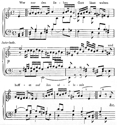 [83] It is given by Spitta as a supplement to vol. iii. It is worth noticing that the right hand plays the three upper notes in each chord, the left only playing the bass; and this is how harmony exercises are still written in Germany.