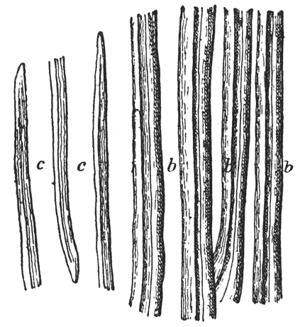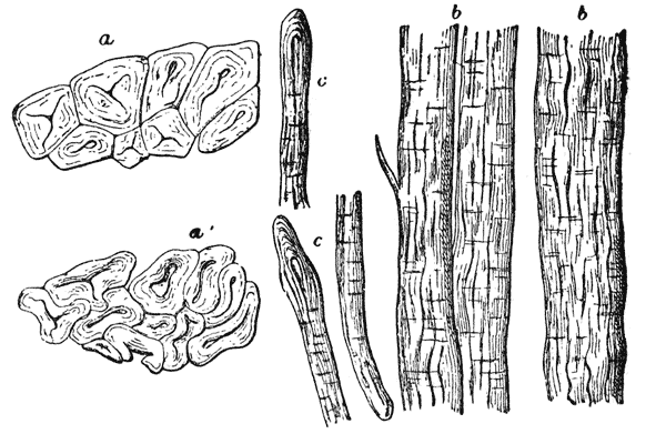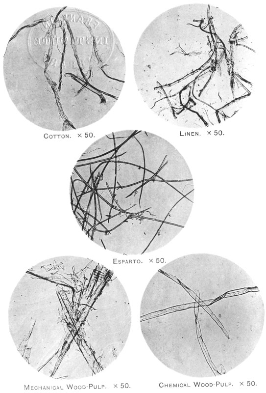 | Mechanical Wood-pulp. × 50. | Chemical Wood-pulp. × 50. |