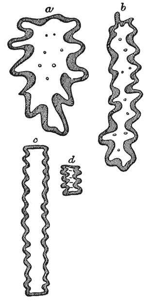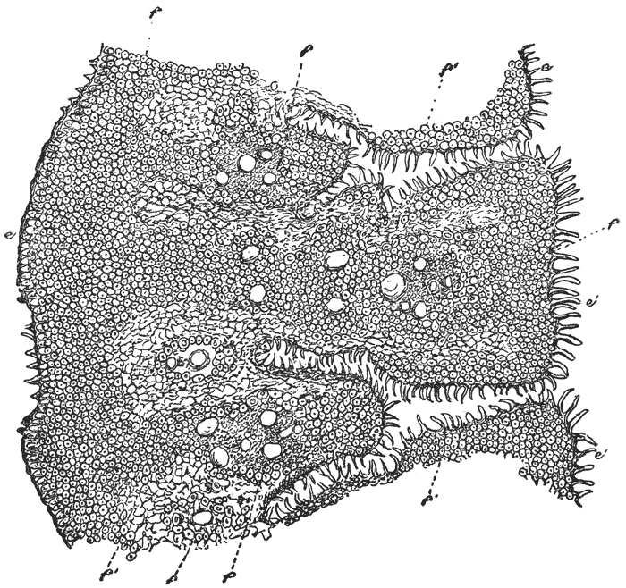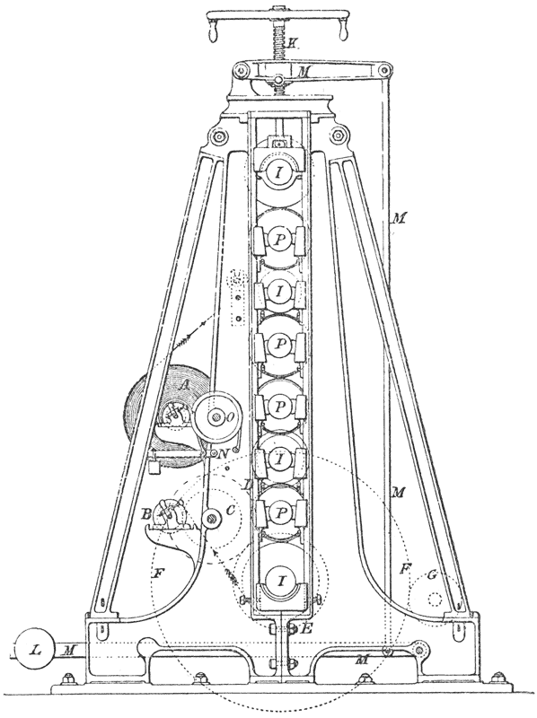 Some missing full stops have been inserted. Many ditto marks have been eliminated, replaced by repeated text. Enlarged curly brackets “}{” employed to combine information in two or more lines or columns have been eliminated, by restructuring text if necessary. One such instance is the table on page 39. The table on page 44 and some other large tables were moved from their original locations inside a paragraph of text to nearby locations between paragraphs. The page 44 table was also divided into two parts, after column six. Illustrations have also been moved from within paragraphs of text to nearby locations between paragraphs.