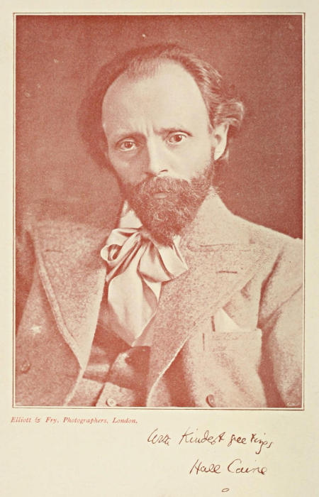 It will be seen from the above that early in life Hall Caine was schooled to bear the unfriendly criticism and persecution of those who were unable to understand him. The schoolmaster mentioned by the Reverend William Pierce was Mr George Gill, the head of the well-known firm of publishers of schoolbooks. From the very first Mr Gill recognised that his young, sensitive pupil had remarkable powers, and that if all went well he would one day make a name for himself. In proof of this I should like to relate a story in connection with the first night of The Christian in London. Mr George Gill, now an old man, was in the stalls, his heart full of pride at the distinguished position his quondam pupil had gained.[26] The theatre was packed with a fashionable and intellectual audience. A play was about to be produced which had taken America by storm, and it was confidently expected that in England also the drama would achieve a tremendous success. Carried away by generous pride and enthusiasm, Mr Gill turned to those seated near him, exclaiming: “I always knew it! I always knew it! I said from the very first that the lad had genius, and to-night I am witnessing the proof of it.” The conduct of the old gentleman reflected the greatest credit on his heart and head alike, and it is a noteworthy instance of Hall Caine’s power of making and keeping friends.
